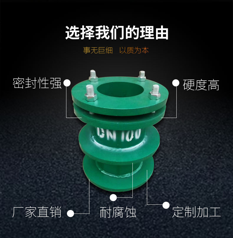 其實要想提高柔性防水套管的使用壽命不是沒有可能,為您支招。我們要想提高產(chǎn)品的使用壽命就要了解產(chǎn)品的本身性能,以及影響產(chǎn)品性能的主要原因。**先我們知道的是產(chǎn)品的損壞多數(shù)是因為安裝不當(dāng)以及腐蝕造成的,關(guān)于這些問題,我們可以從根本上入手。安裝不當(dāng)?shù)膯栴},我們在安裝的時候就需要按照相應(yīng)的圖紙進行安裝,如果沒有相應(yīng)圖紙或者技術(shù)人員不到位,可以直接連接生產(chǎn)廠家進行指導(dǎo)安裝。關(guān)于產(chǎn)品符合損壞的方面,我們**先要知道我們的管道是過什么介質(zhì),然后根據(jù)數(shù)據(jù)分析采用合適的金屬材料進行構(gòu)造,還有就是在安裝前要進行一定的防腐措施,比如涂抹防腐漆等。